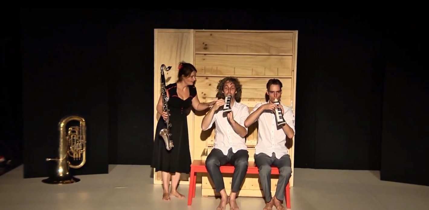 Wenn ein Kind die Welt entdeckt, dann nautzt es dafür alle Sinne. Es schmeckt, riecht, hört, sieht und fühlt. Die drei Musiker vom niederländischen Ensemble Hoeken van de Kammermuziek machen es in diesem musikalisch-szenischen Konzert genauso. Systematisch erproben sie ihre Instrumente Trompete und Tuba, Waldhorn und Flöte sowie die Klarinette, die immer ganz anders klingen, wenn man hineinbläst. Mit Hilfe ihres Atems und der daraus entstehenden Töne, der dabei entsteht, nehmen sie ihr Publikum mit in eine Welt, in der nichts anderes gesprochen wird als Musik – mal sensibel und still, mal witzig und laut.