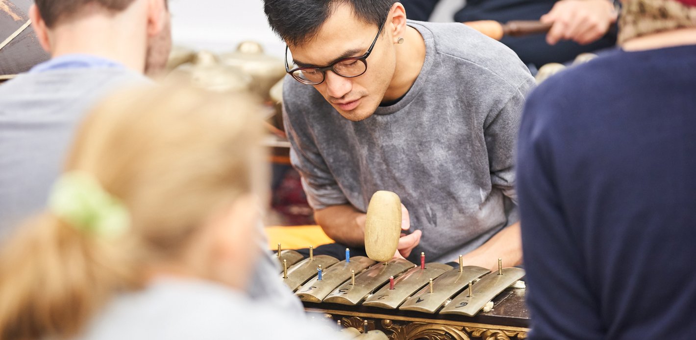 Gamelan music originated many centuries ago on the islands of Bali and Java. It is played jointly on gongs, metallophones and drums. Its unique soundscape already captivated composers such as Claude Debussy and also still has a lot of fans in Europe today. The Elbphilharmonie has a particularly beautiful ensemble of instruments. In this workshop, you can try out these instruments with guidance – and experience how spellbinding it sounds when everyone plays together.