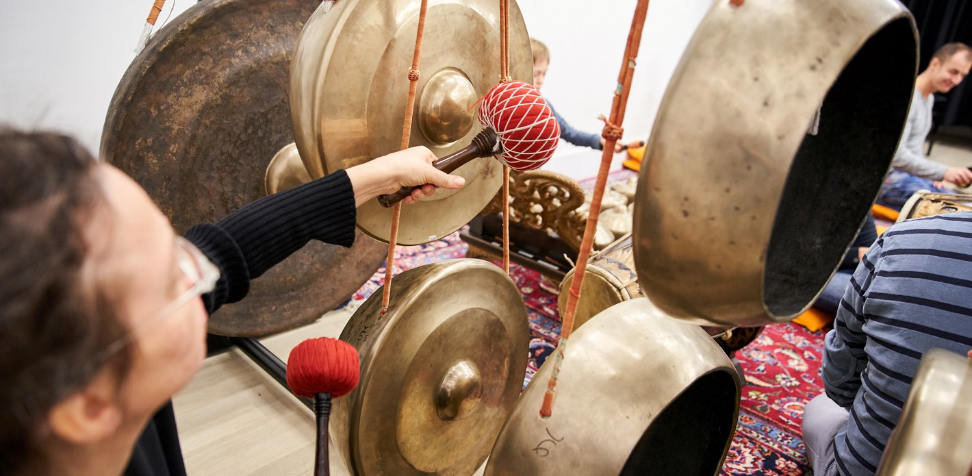 Gamelan music originated many centuries ago on the islands of Bali and Java. It is played jointly on gongs, metallophones and drums. Its unique soundscape already captivated composers such as Claude Debussy and also still has a lot of fans in Europe today. The Elbphilharmonie has a particularly beautiful ensemble of instruments. In this workshop, you can try out these instruments with guidance – and experience how spellbinding it sounds when everyone plays together.